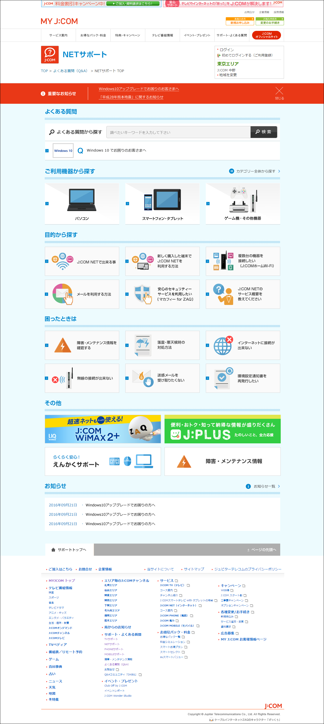 J:COM NET サポートサイトリニューアルのお知らせ